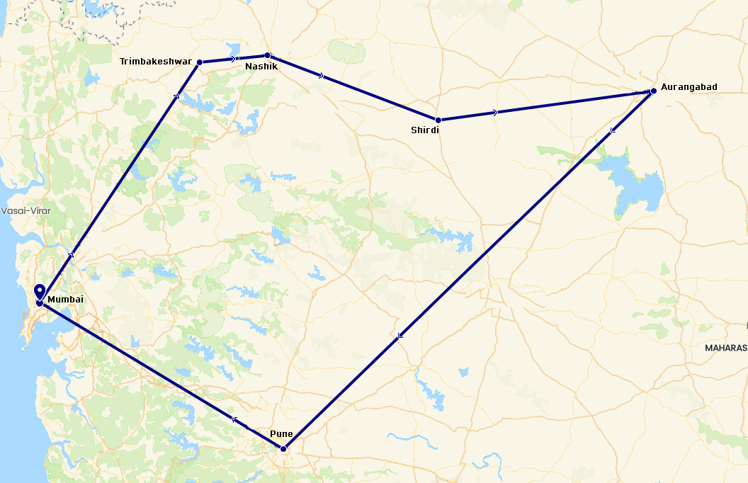 Mumbai – Trimbakeshwar – Nashik – Shirdi – Aurangabad – Ghrishneshwar –Pune – Bhimashankar